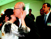吳伯雄訪問大陸行前深情吻別妻子]]>