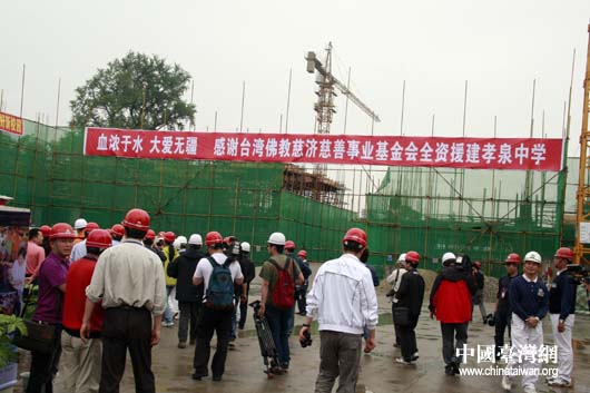 5月6日下午,兩岸媒體聯(lián)合采訪團來到四川省德陽市,采訪臺灣佛教慈濟慈善事業(yè)基金會援建項目——孝泉中學(xué)的施工情況。(中國臺灣網(wǎng) 鐘寶華 攝)