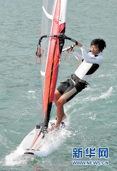 11月3日,中國香港帆板隊選手陳敬然在訓練中。當日,中國香港帆板隊在香港赤柱進行訓練,備戰11月在廣州舉行的第十六屆亞洲運動會。新華社記者盧炳輝攝