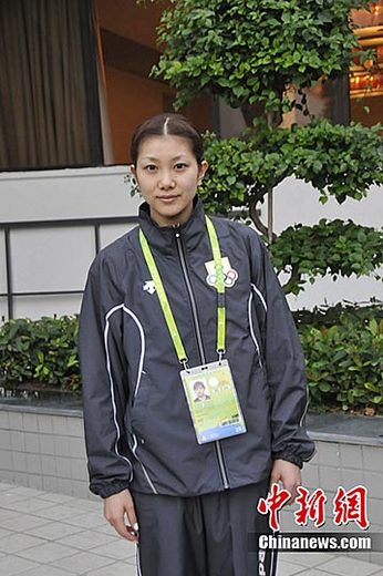 11月10日,廣州天河體育館。日本羽毛球名將、亞運代表團旗手潮田玲子結束訓練。中新社記者 盧巖 攝