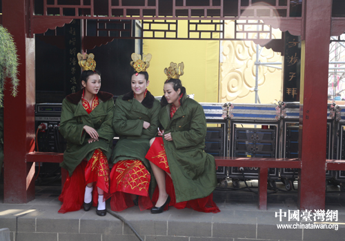 中國臺灣網4月10日消息 日前,辛卯年黃帝故里拜祖大典在河南新鄭圓滿落幕,海內外炎黃子孫共聚祖根圣地,祈福祖國昌盛。圖為大典開始前,端莊美麗的禮儀小姐小憩(中國臺灣網 吳捷 攝)