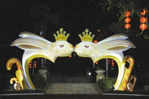 而白云山歷來被認(rèn)為是情侶最值得去的元宵賞燈地。白云山的燈飾分布全山不同地方。山頂廣場(chǎng)有“福兔新春送吉祥”、“皇冠兔子賀新春”等大型燈飾,在西門和桃花澗,則設(shè)置有財(cái)神爺、玉兔和桃花仙子等造型的燈飾。