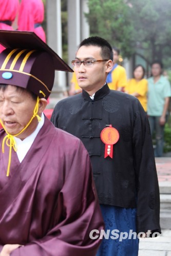 9月28日清晨,臺北孔廟隆重舉行孔子誕辰2559周年釋奠典禮。35歲的孔子第79代裔孫孔垂長,首度以大成至圣先師奉祀官身分親行上香。孔子第77代裔孔德成于去年辭世。